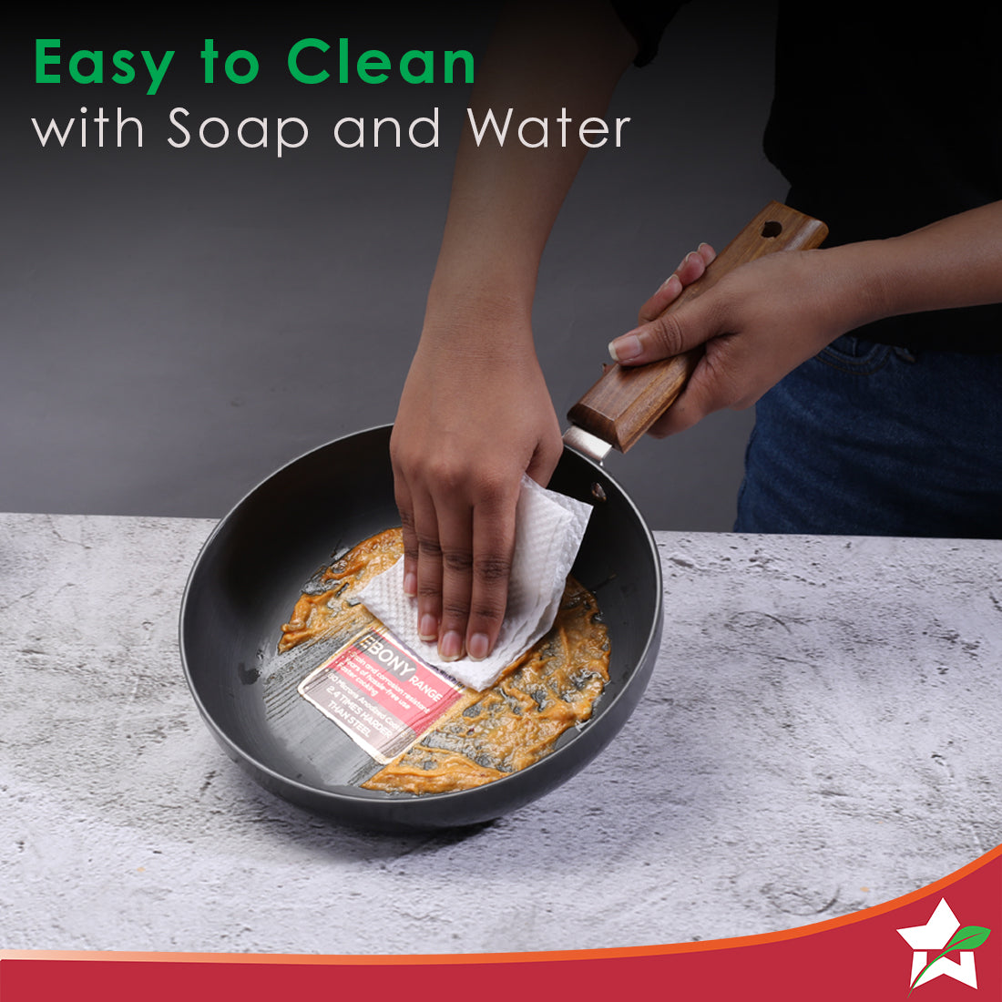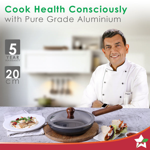 Ebony Non-stick 20 cm Deep Fry Pan with Lid with Induction Bottom & Wooden Handle | Hard Anodized Aluminium | Metal-spatula friendly | 3.25 mm thickness ideal for deep frying | 5 Years Warranty | Grey