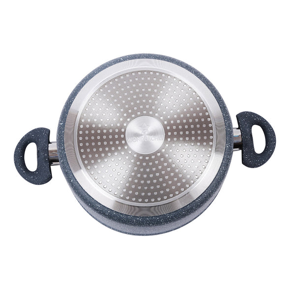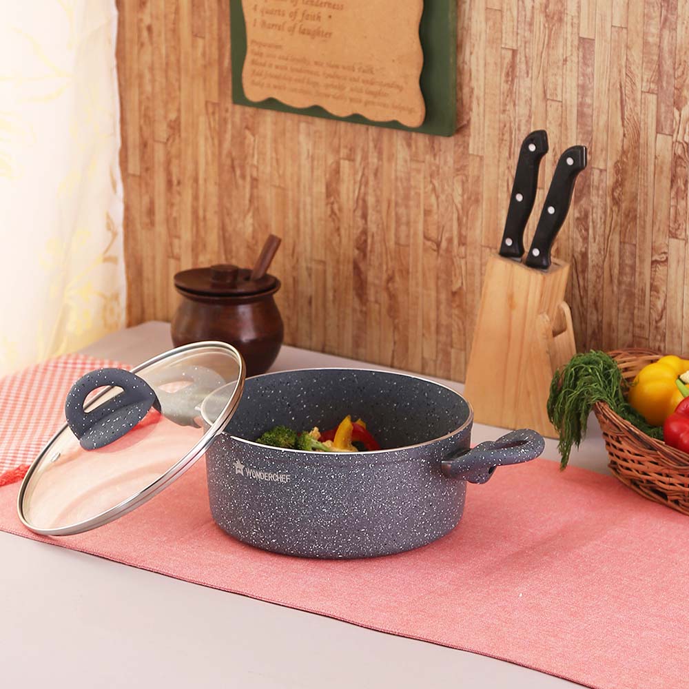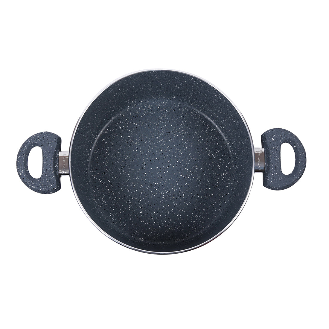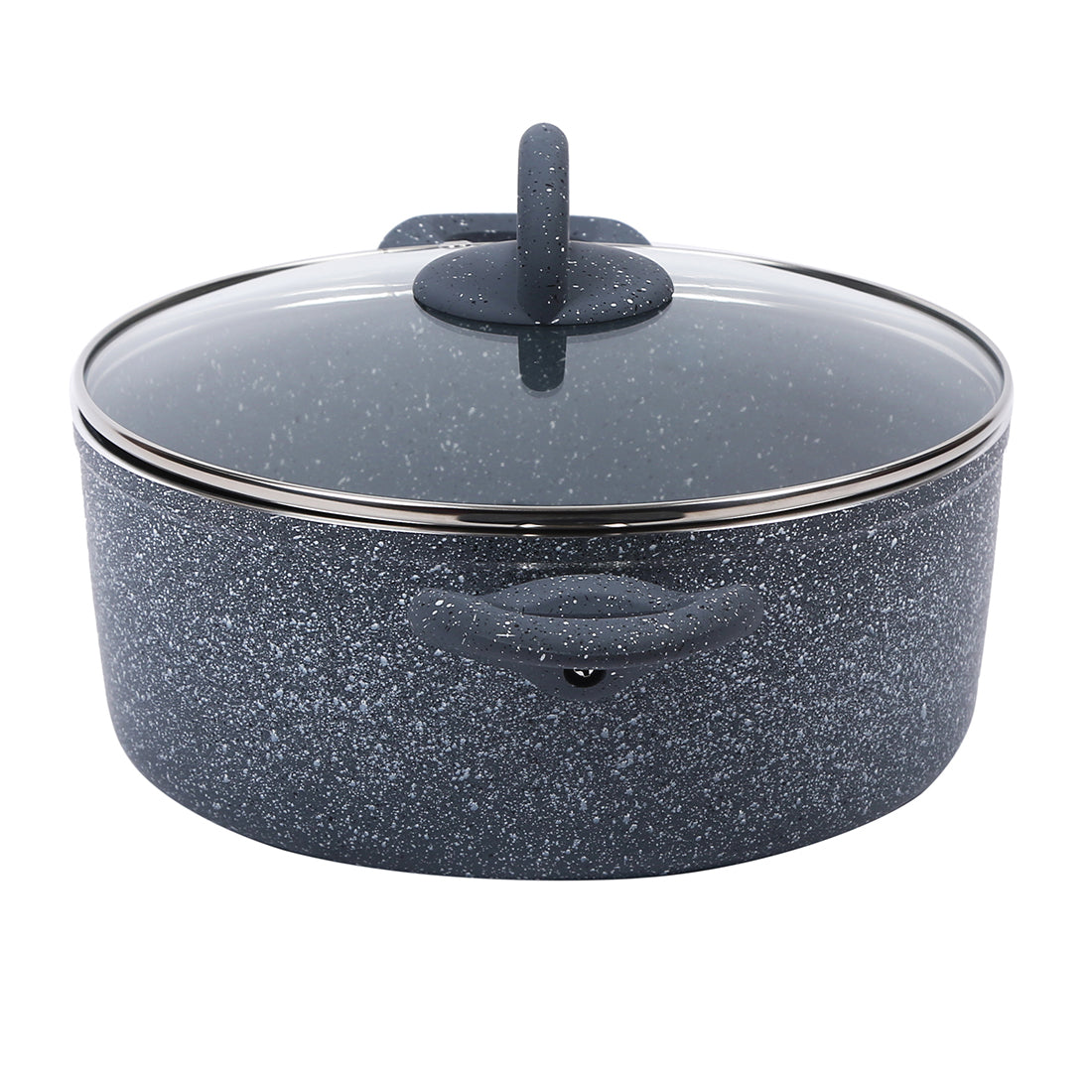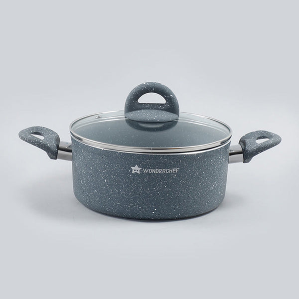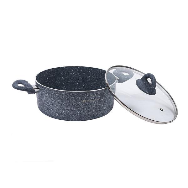 Granite 24 cm Non-Stick Casserole | Glass Lid |Induction Bottom | Soft-Touch Handles | Virgin Aluminium | PFOA and Heavy Metals Free | 3.5mm | 4 liters | 2 Year Warranty | Grey