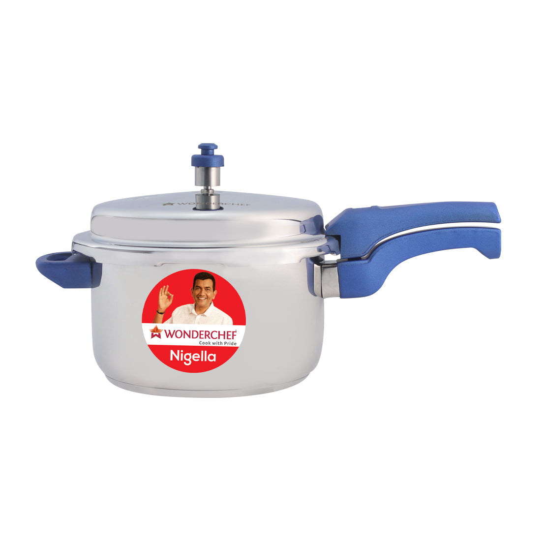 Nigella Induction Base 5L Stainless Steel Pressure Cooker with Outer Lid Blue