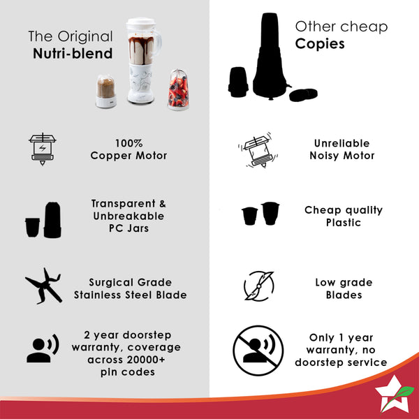 Nutri-blend Juicer, Mixer, Grinder, Blender & Smoothie Maker | 400W 22000 RPM 100% Full Copper Motor | Stainless steel Blades | 3 unbreakable jars | 2 Years warranty | Recipe book by Chef Sanjeev Kapoor | White