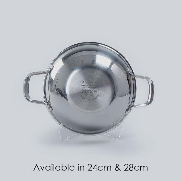 - Wonderchef Renewed Stanton 28 cm Non-stick Kadhai/Kadai with Lid - 3.4 Litre | 3 ply steel