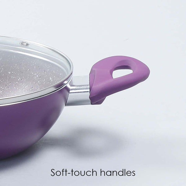 A tempered glass lid with steam vent is provided to make cooking easy as certain ingredients need to be simmered down and covered while cooking.