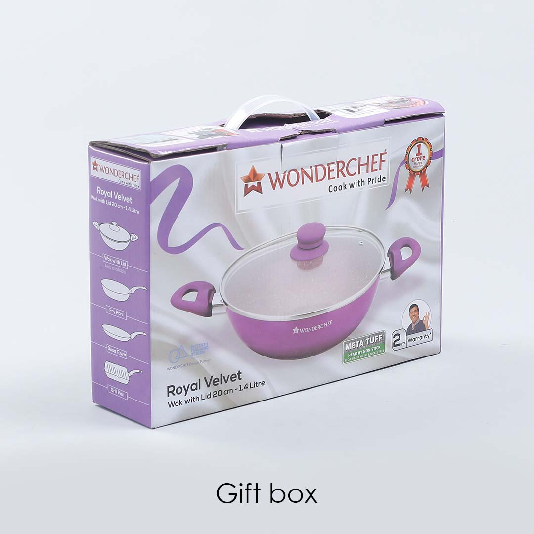 A. Wonderchef Royal Velvet pans are inspired by Italian design and adhere to German quality standards. The pans are made with pure grade virgin aluminium and have a health-friendly 5 layer Meta Tuff non-stick coating. The pans are strong and long lasting with 43 micron thickness. They are well priced and come with a Reliable Wonderchef Warranty 2 years.