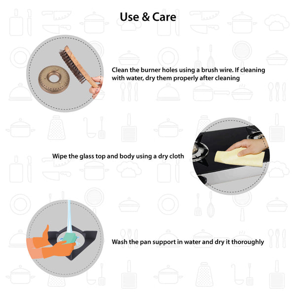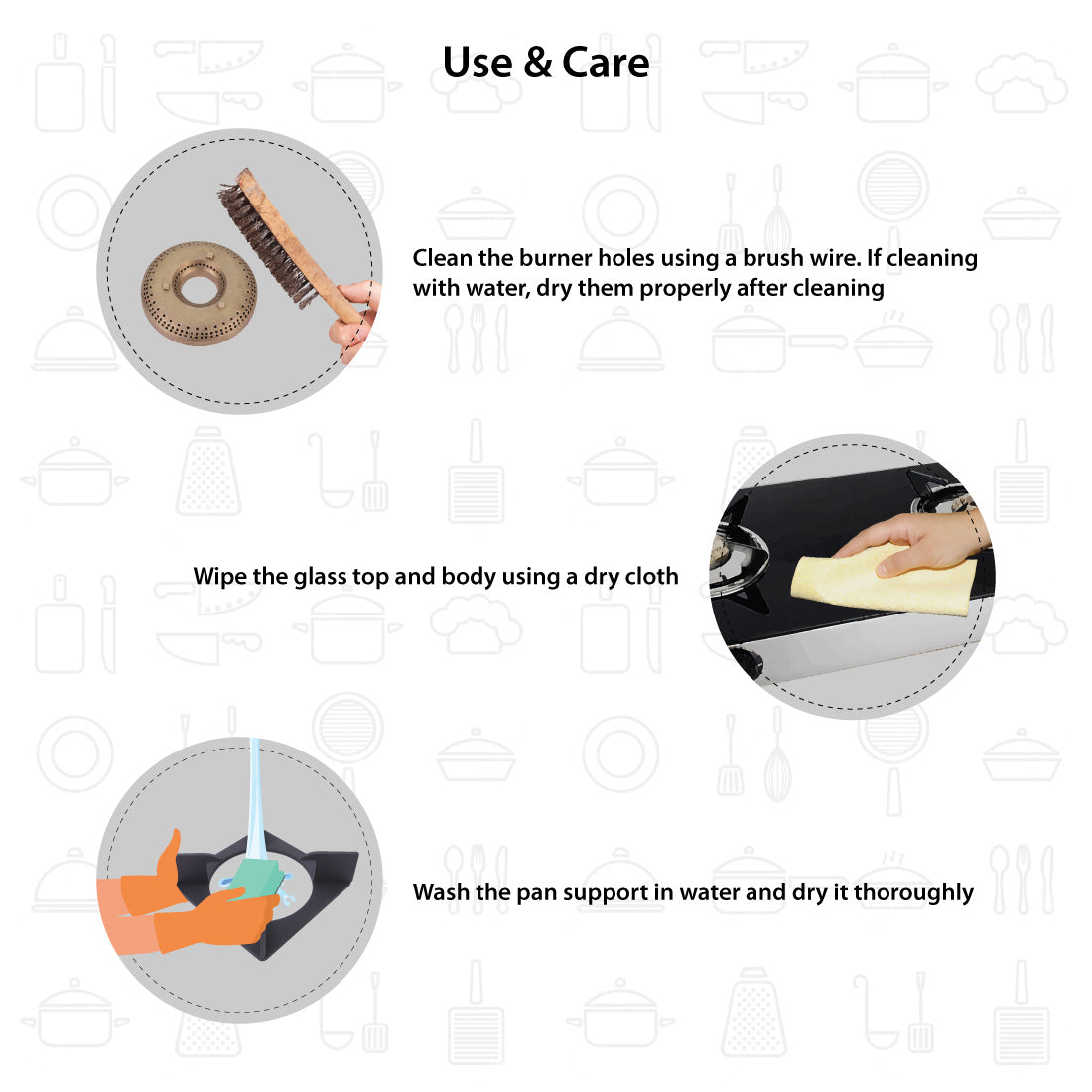 Ruby 4 Burner Glass Cooktop, Black Toughened Glass with 1 Year Warranty, Ergonomic Knobs, Heat-Efficient Brass Burners, Stainless-steel Spill Tray, Manual Ignition