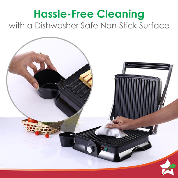Sanjeev Kapoor Tandoor Family Size| Electric Contact Grill & Sandwich Maker| 3-in-1 Appliance|1600 Watt|180 Degree Grilling|Cool Touch Handle|Auto Shut Off|2 Year Warranty| Black & Silver