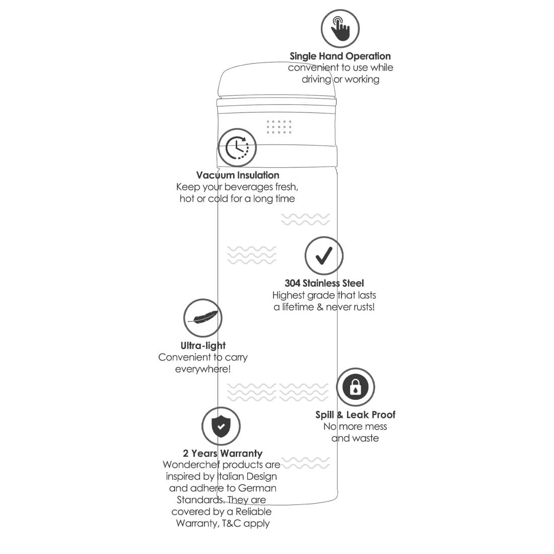 Uni-Bot, 500ml, Silver, Double Wall Stainless Steel Vacuum Insulated Hot and Cold Flask, Ultra Light, Spill and Leak Proof, 2 Years Warranty